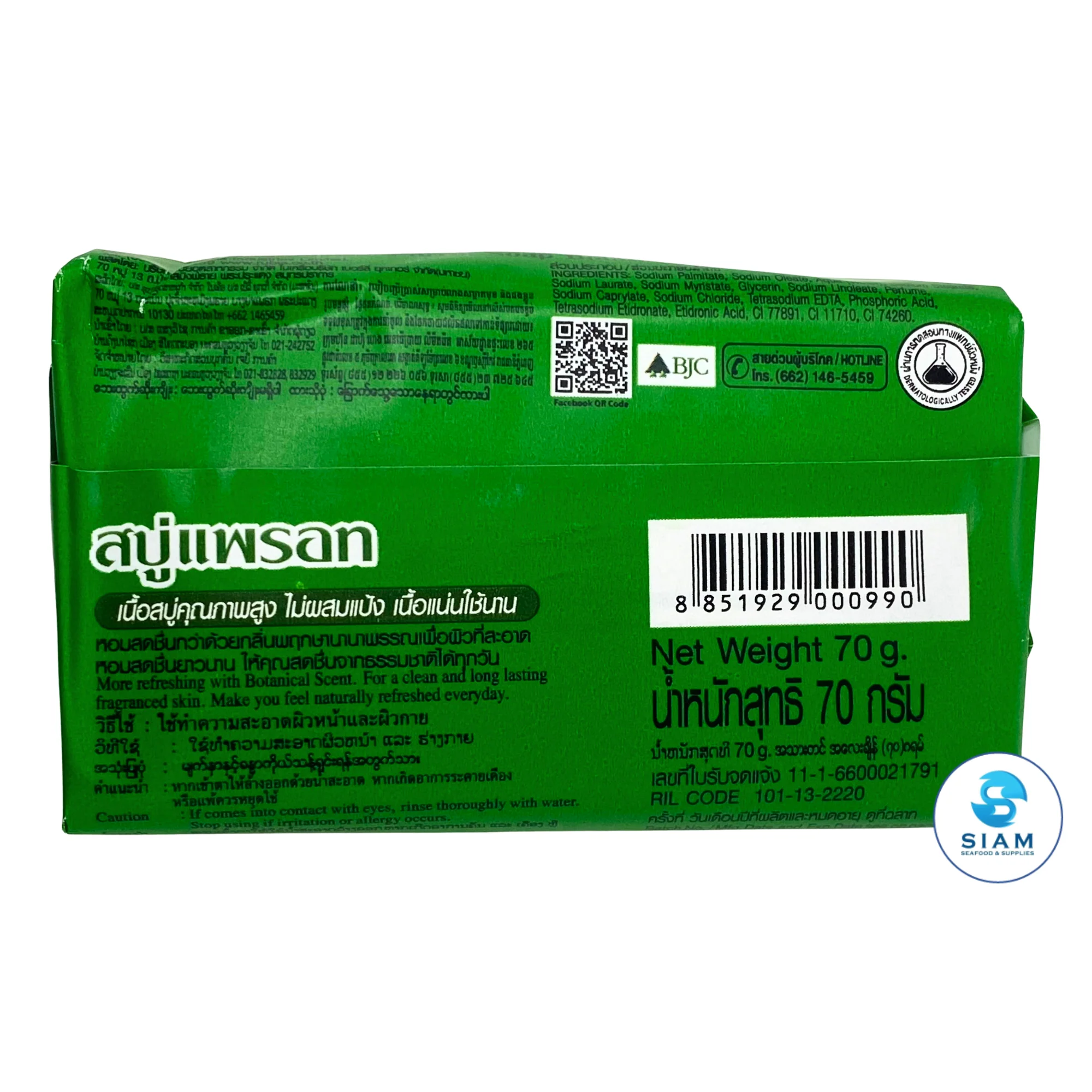 This classic Thai soap combines a recognizable botanical aroma with a clean, refreshing feel, making it suitable for everyday bathing. The formula is designed for regular use and offers a unique scent experience loved by many Thai households.
