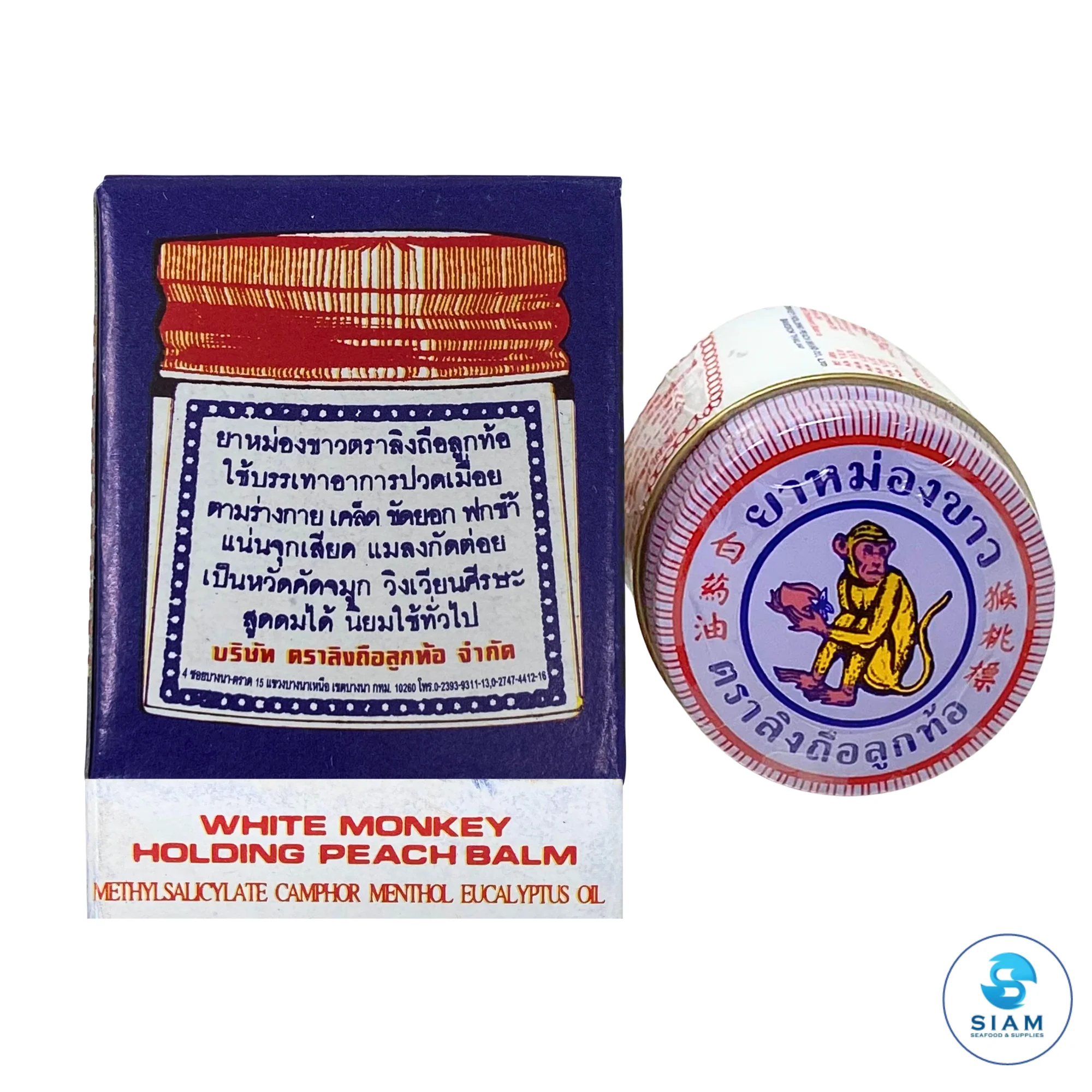 White Monkey Holding Peach Balm - Methyl Salicylate Camphor Menthol Eucalyptus Oil (0.42 oz) ยาหม่องขาวตราลิงถือลูกท้อ